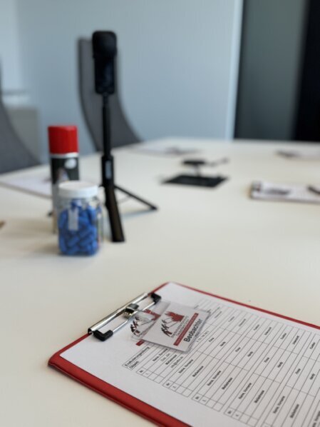 Zum Übungstermin werden sämtliche erforderlichen Organisationshilfen von uns gestellt.